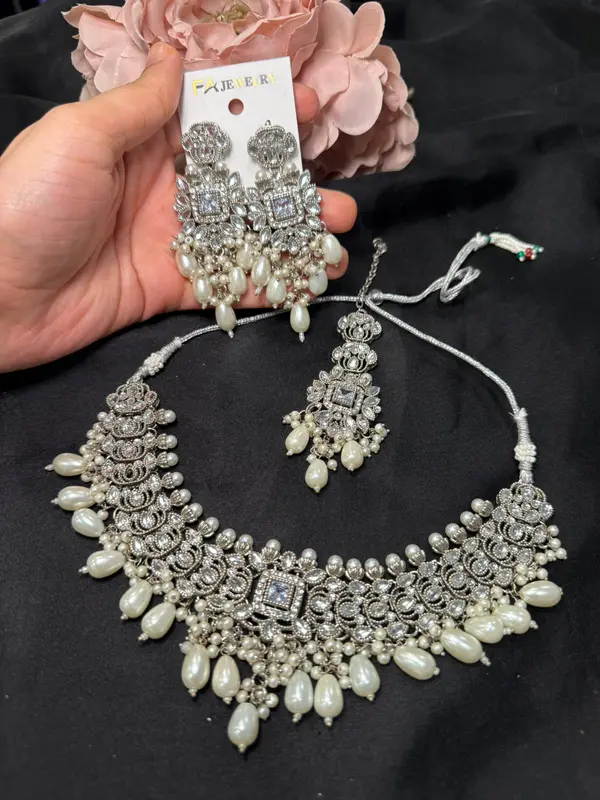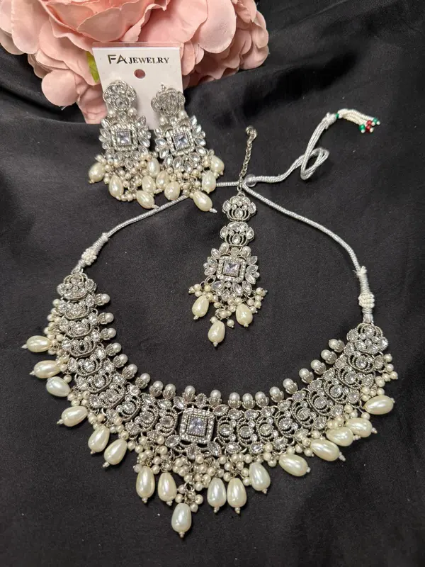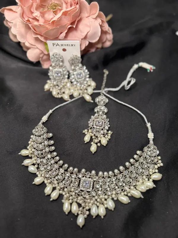 Key Features: Necklace with tikkaMatching earringsElegant Asian design