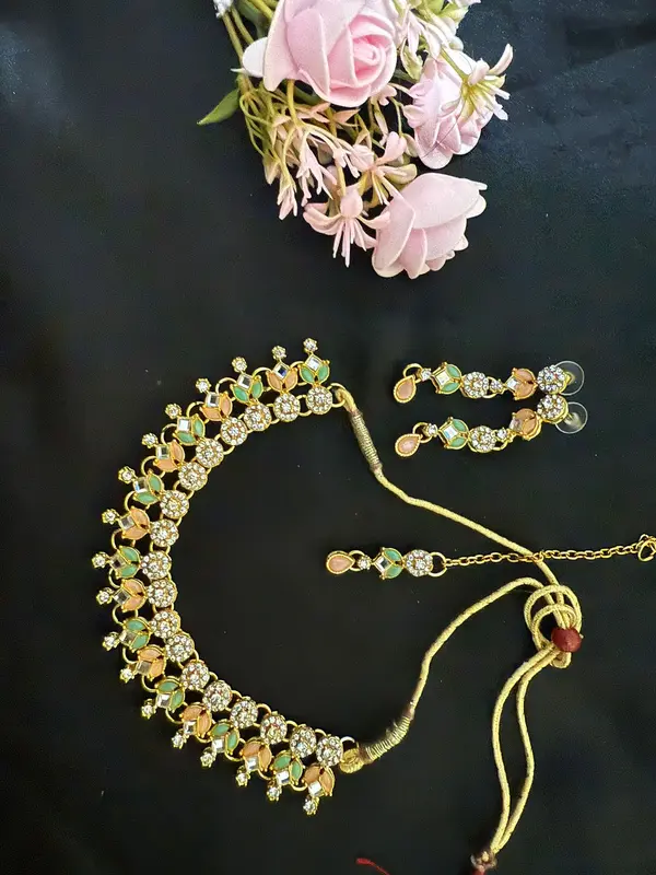 • Necklace and Tikka: The set features a necklace and a tikka, both in multi and golden colours.