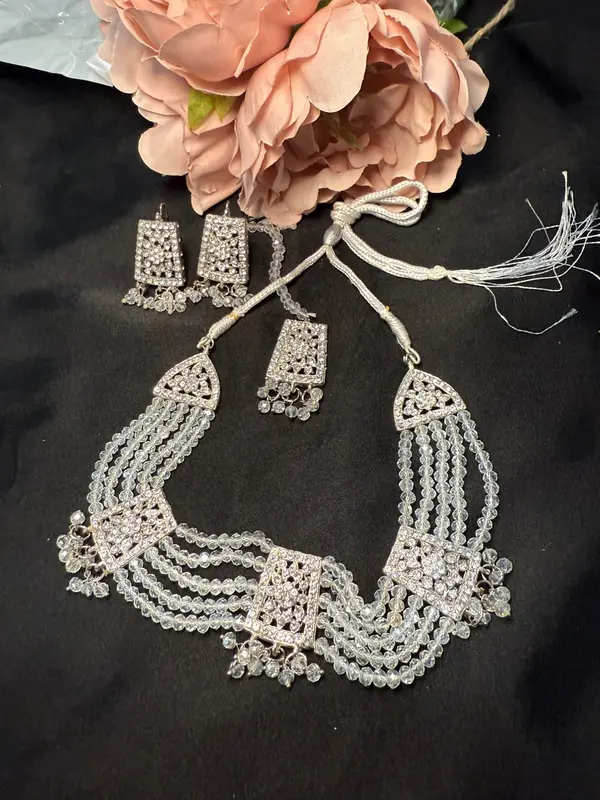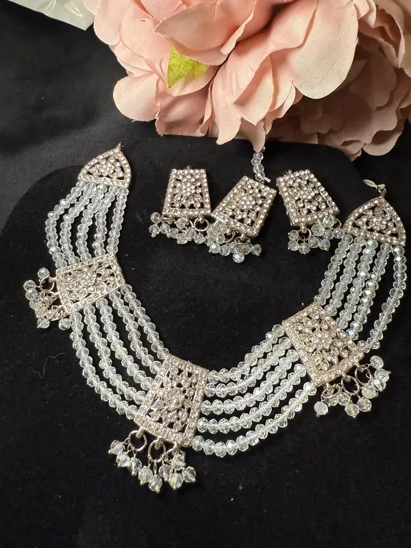 Elegant Asian Jewellery Set with Rhinestone Accents and Beaded Design for Special Occasions Perfect for Weddings Parties and Events
