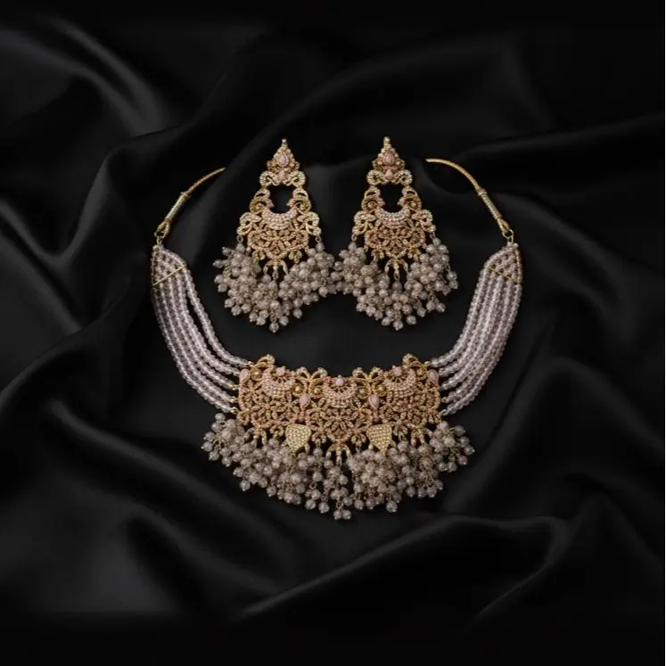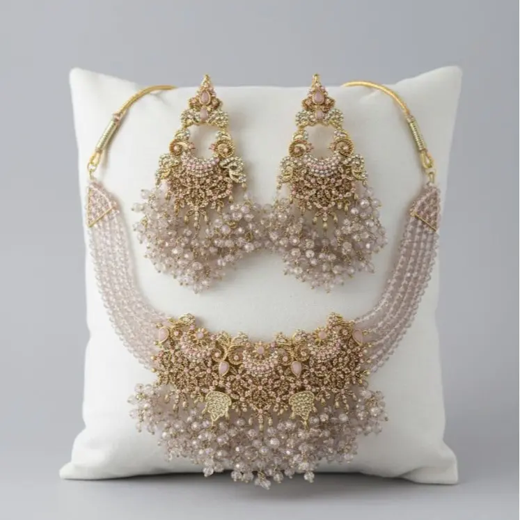 - This jewelry set is designed for special occasions, including weddings and parties. It features a beautiful combination of gold and pink colors, making it a standout choice for brides and special events.