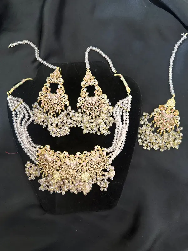- Title: Elegant Indian Bridal Jewelry Set in Gold and Pink Perfect for Weddings Parties and Other Special Occasions Code BP3L25