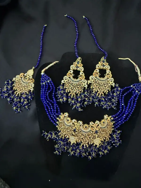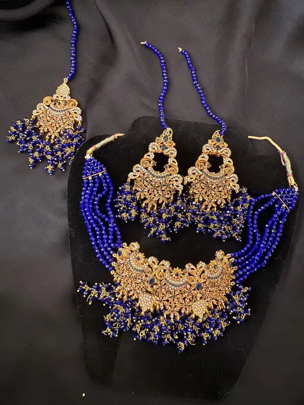 Royal Blue and Gold Bridal Jewelry Set Perfect for weddings,parties & for special occasions – Code: B3L24