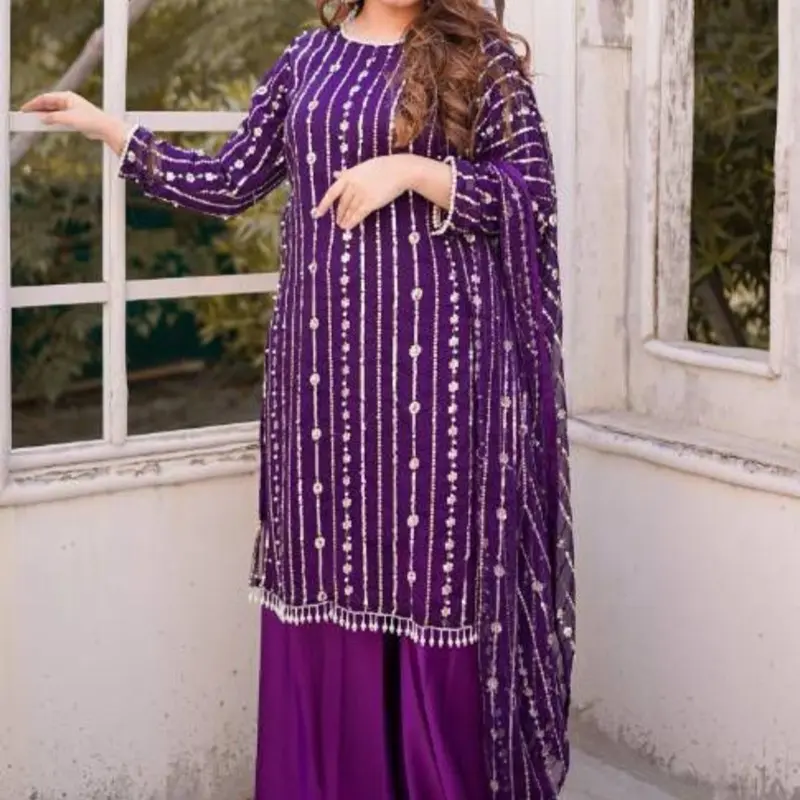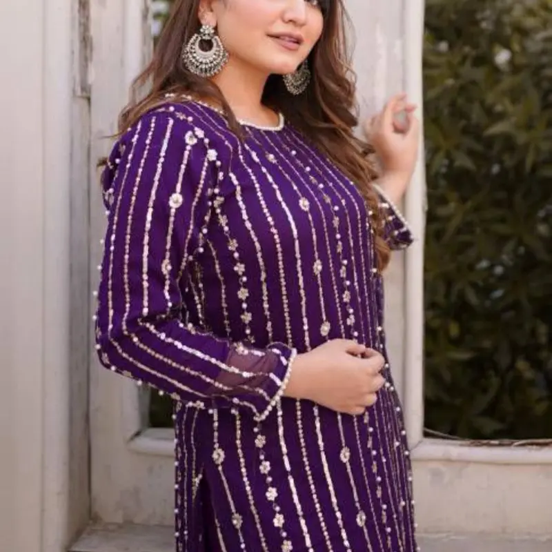 Taabir Purple Chiffon top Elegance Womenswear Silk Bottom