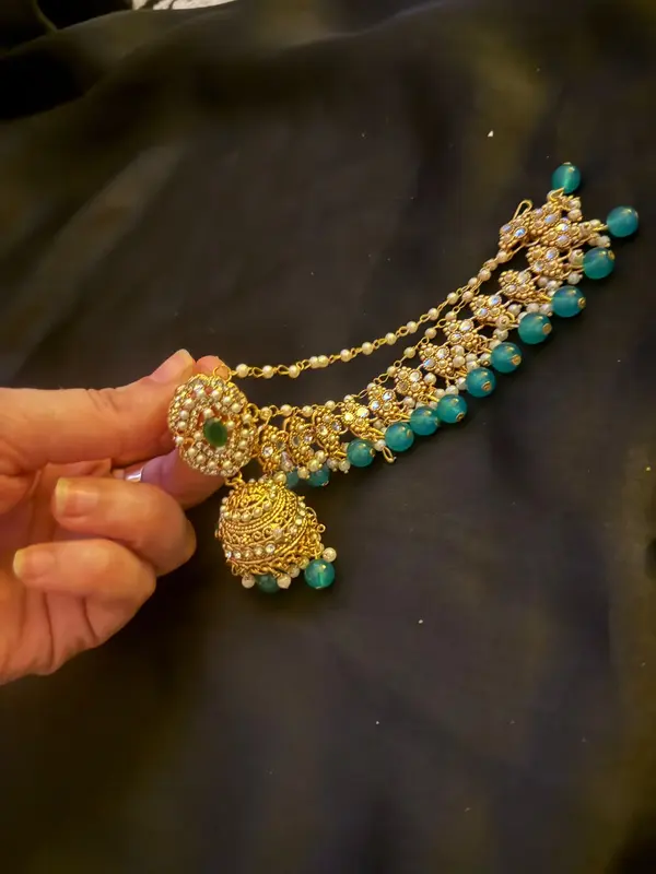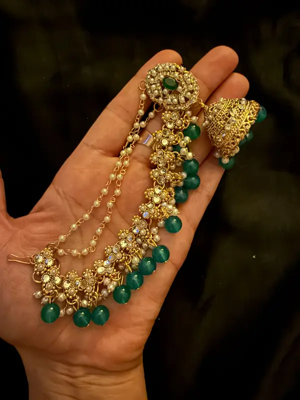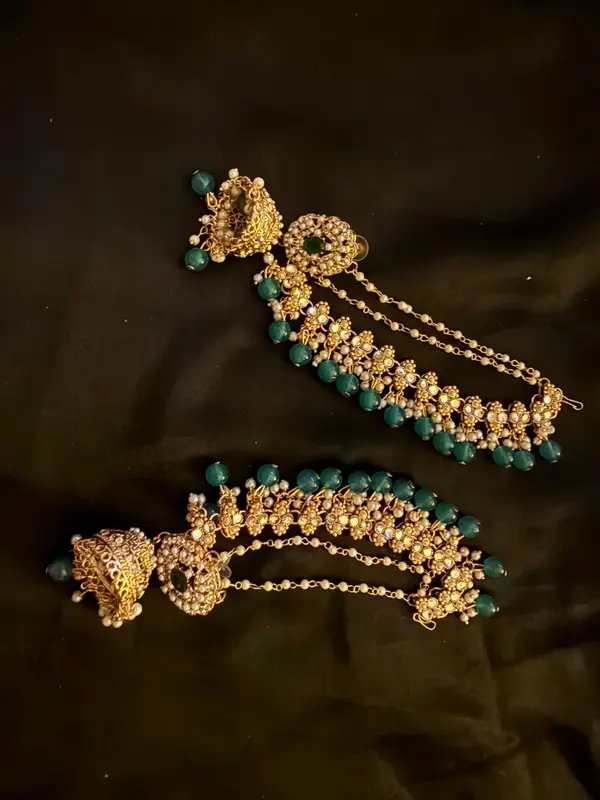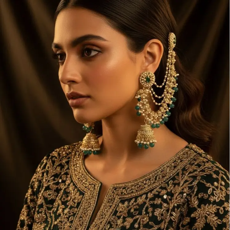 These Jhumka earrings are a classic piece of South Asia jewellery. They feature an intricate design, making them perfect for festive wear. The elegant beads add a touch of sophistication to any outfit. CODE:SBErn18 ensures you get the authentic look.